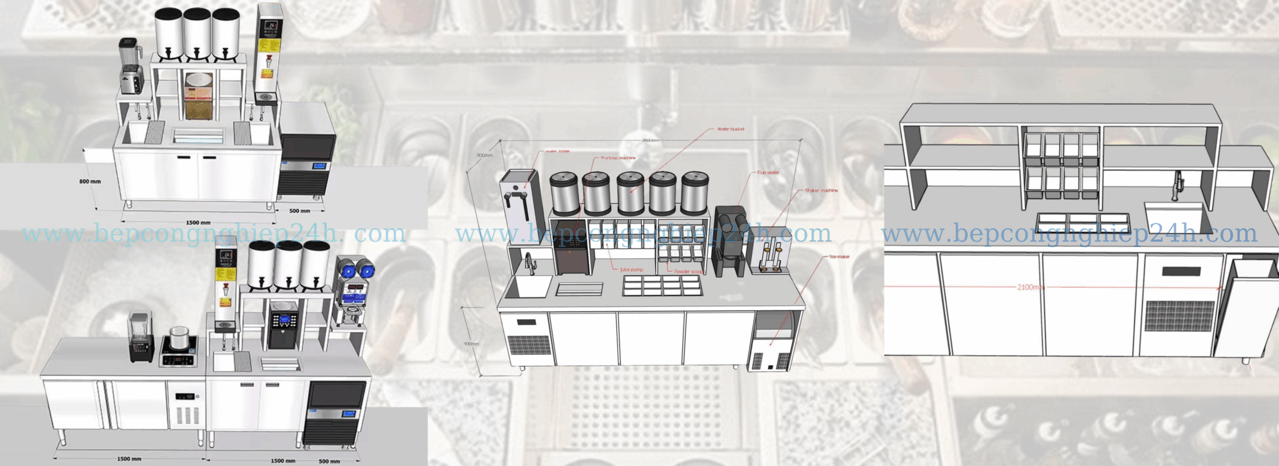 Gợi ý: Bạn có thể yêu cầu nhà sản xuất thiết kế thêm các ngăn chứa tùy theo nhu cầu sử dụng của quán.