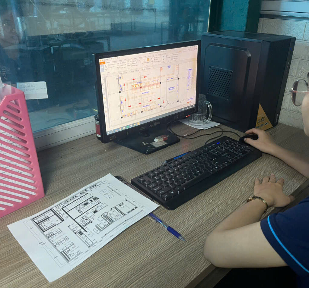 Vẽ thiết kế chi tiết trang trí nội thất, trang thiết bị: tủ, bàn, kệ bếp, tủ bếp,…